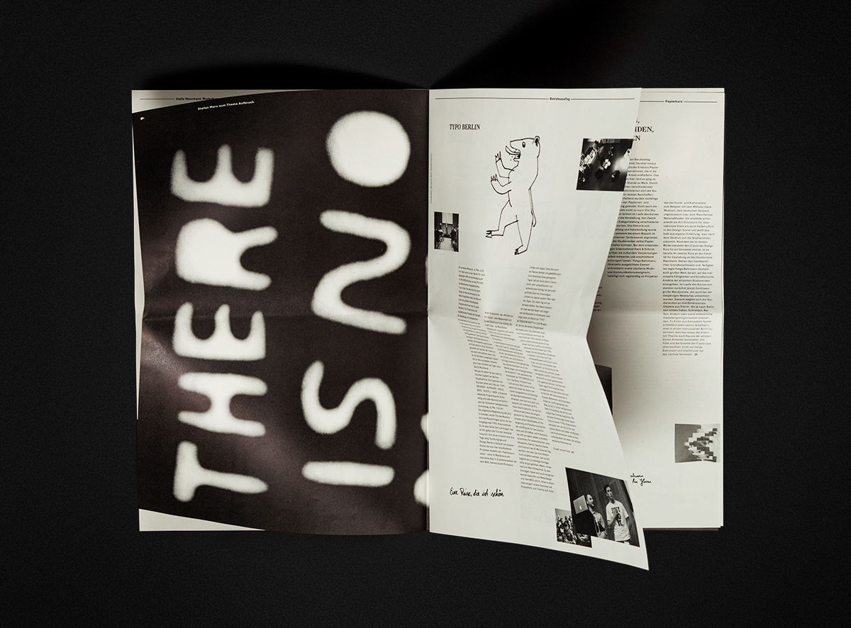 is unobtrusive to offer more space without interfering with the student works. The grid as well as the content is rather free in the newspaper that contains the editorial part. Furthermore, graphical contributions to the newspaper are made by Stefan Marx while Uwe-Jens Bermeitinger expressed himself verbally. After all, the poster dares a final breakup. It was designed for the »Captcha« design festival, initiated by students. The festival itself enfolded the principle »Befreiung der Schrift«, roughly translated into liberation of type. komma 15 is also a break out of familiar maxims, intentionally