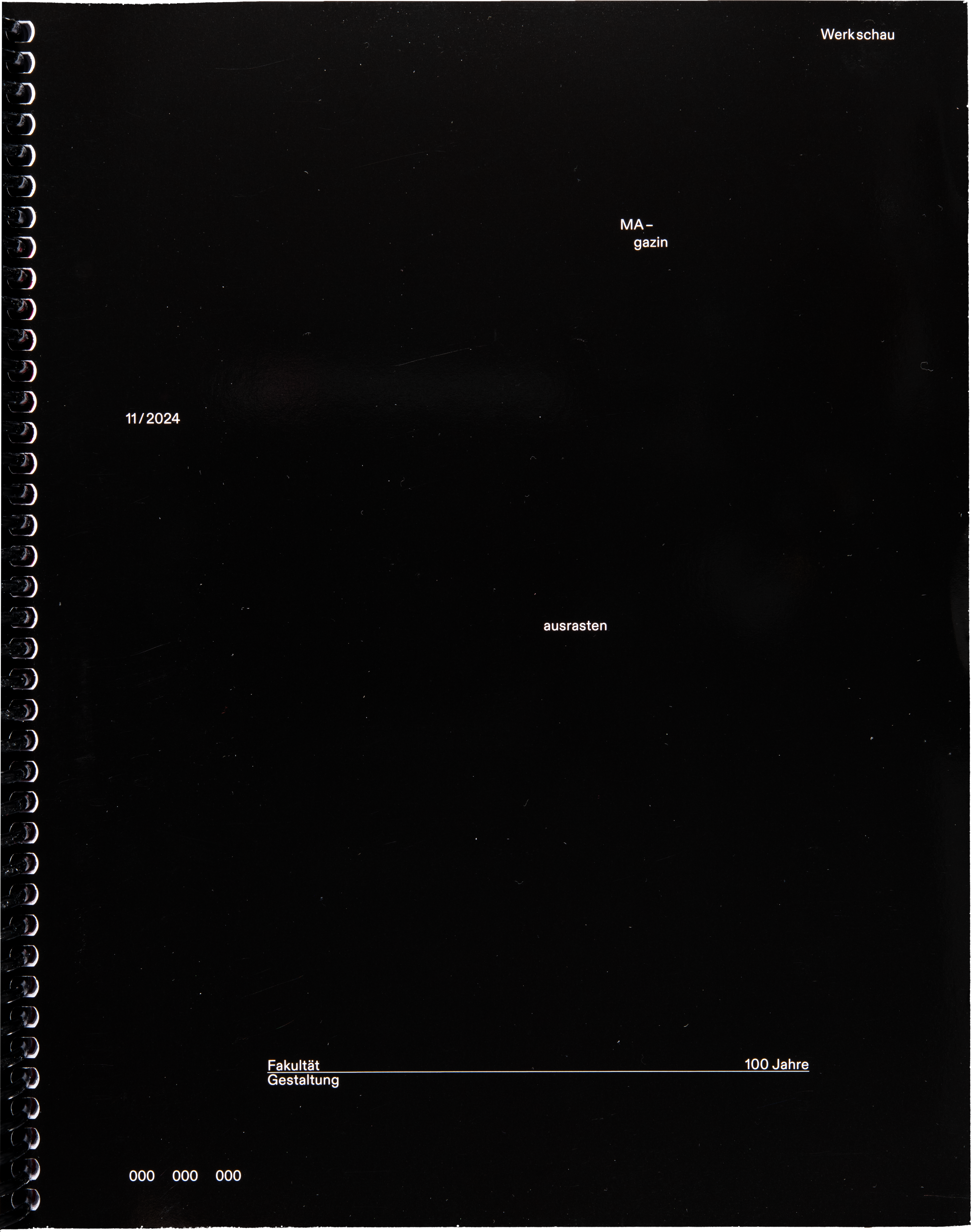The magazine’s standout feature is affectionately called the “chunky plastic spiral,” along with colorful chapter dividers that segment the content. The cover begins in symbolic solid black, transitions to vibrant colors inside, and concludes with a white back cover. As part of the launch event, several covers were spray-painted with red, blue, and green paint, forming a collective artwork. Throughout the rest of the exhibition, visitors were invited to take creative control, customizing their own copies as they pleased.